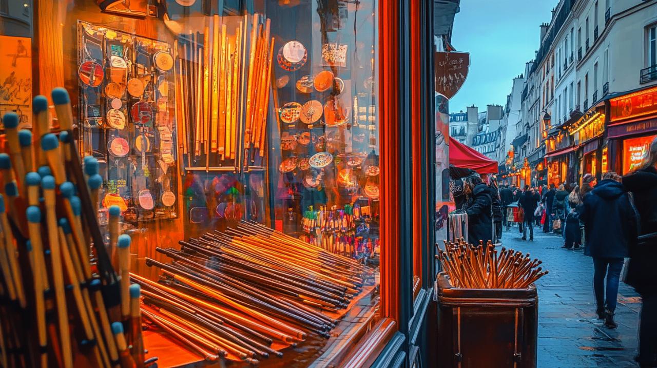 Le quartier du Marais, connu pour son dynamisme culturel et sa diversité commerciale, accueille également plusieurs adresses dédiées aux musiciens. Les rues pavées de ce secteur historique abritent des boutiques où l'on peut trouver une sélection pointue de baguettes adaptées à tous les styles de jeu. Les percussionnistes apprécient particulièrement l'atmosphère intimiste de ces commerces de proximité, où le conseil personnalisé prime sur la vente en grande quantité. Ces établissements proposent souvent des marques prestigieuses et permettent aux musiciens de tester différents types de baguettes avant l'achat, une démarche essentielle pour trouver le matériel parfaitement adapté à sa technique et à ses préférences sonores.